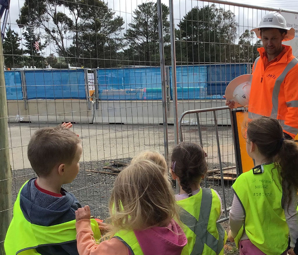 The kids enjoyed putting on Inland Rail PPE – which left plenty of growing room for them – and had so much to say that Inland Rail Stakeholder and Engagement Advisor Hamish Pink struggled to get a word in.