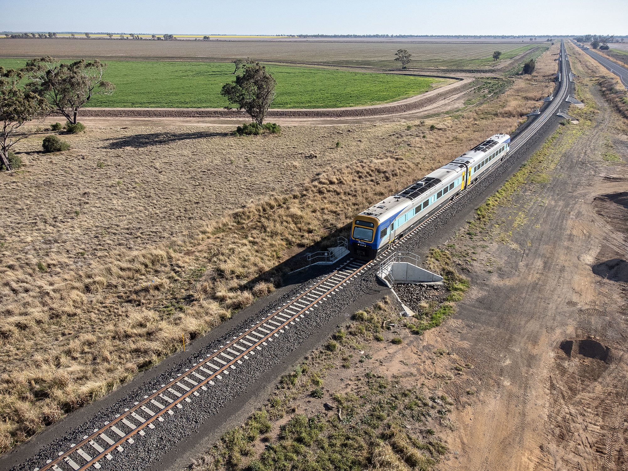 Kicking off in April 2021, construction involved installing 176km of new track within an existing rail corridor, replacing bridges and culverts, upgrading level crossings, and installing new crossing loops.