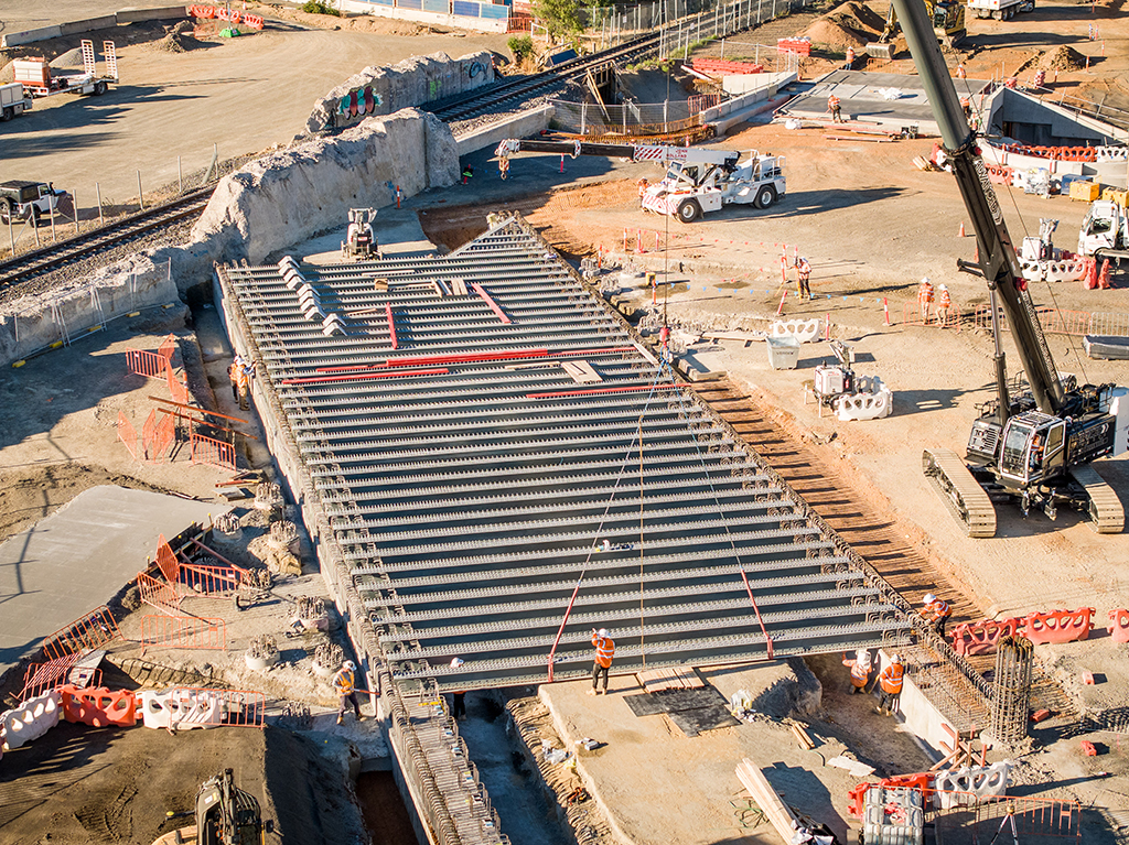 When complete, the new 44m long and 15m wide rail bridge will be located on top of the new Anderson Street vehicle underpass.