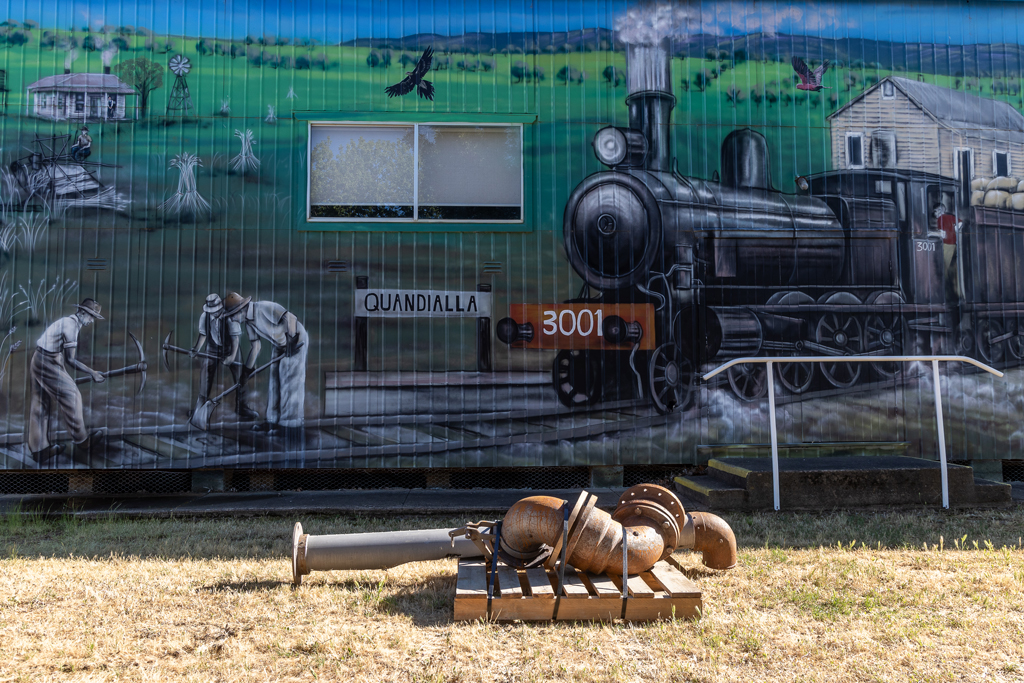The pipe will be installed beside the Quandialla Soldiers Memorial Hall, in front of a community mural and within view of the original water tank. A commemorative sign will accompany the display, sharing the story of Quandialla’s railway legacy.