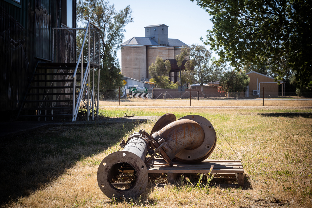 Quandialla, founded in 1914 ahead of the arrival of the railway in 1916, grew rapidly into a vital service town for grain production and livestock transport. The water tank and pipe likely served steam locomotives in the early 1900s, making them key artefacts of the town’s development.