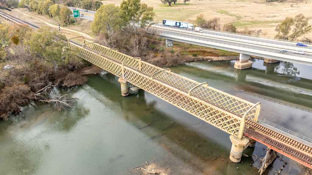 We will raise the sway braces attached to the top chord of the truss to allow for the vertical clearance required for double-stacked freight trains along the alignment. We recognise the heritage significance of the Murray River bridge, and we are working with the appropriate stakeholders to ensure the new design and framework of the bracing is appropriate to the existing fabric and style of the bridge.