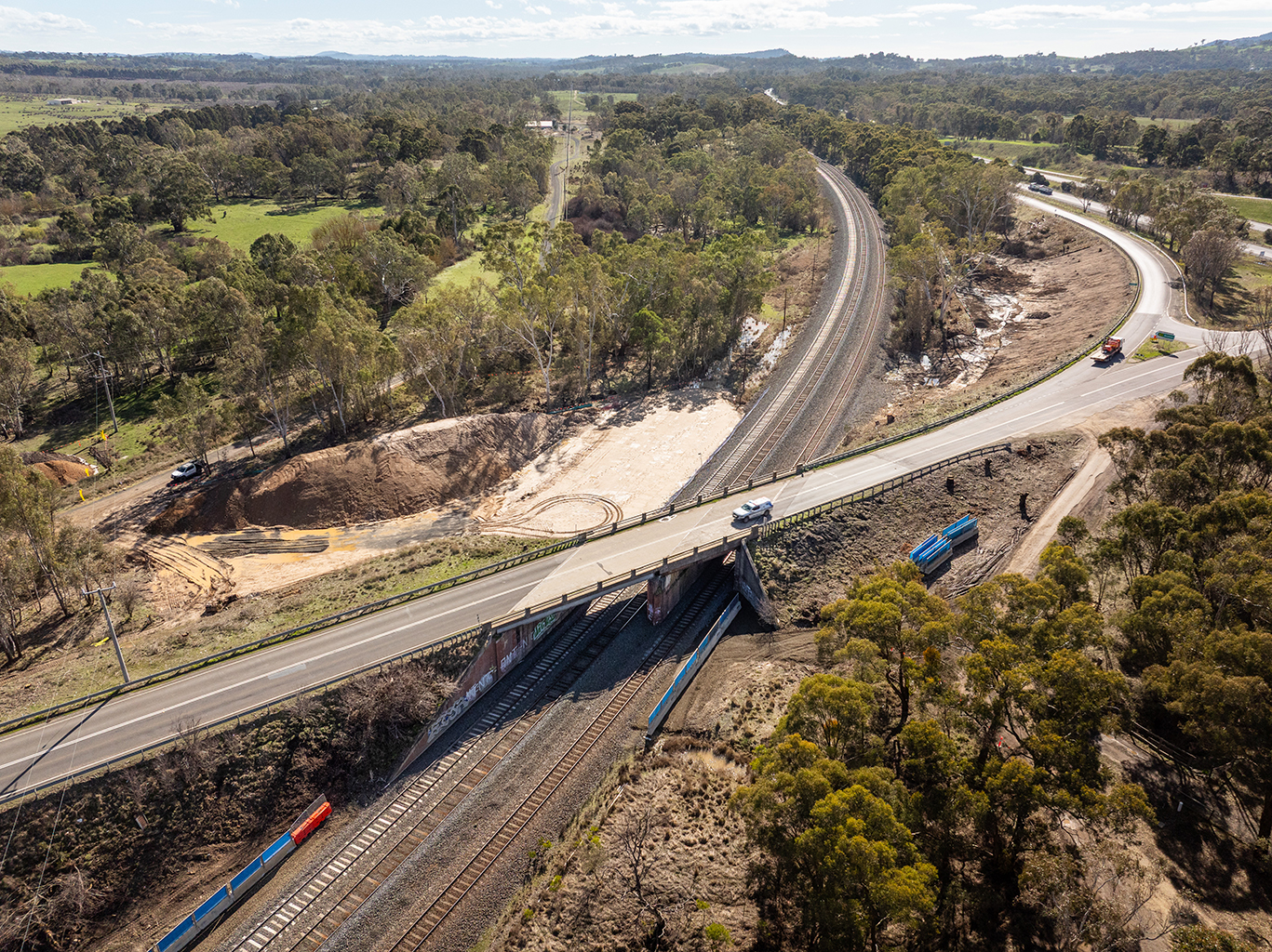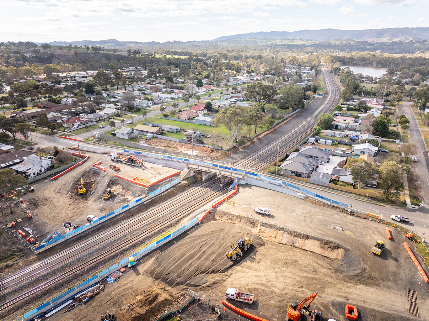 Tracks lowered under Broadford’s Hamilton Street bridge, September 2025